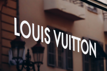 Nice, France - July 13, 2023: Signboard of the Louis Vuitton boutique in the center of Nice