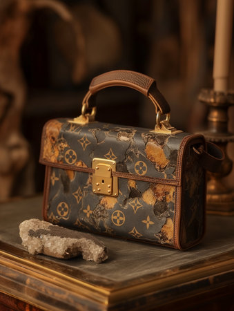 July 26, 2021: Nakhon Prathom, THAILAND, On the table is a Louis Vuitton bag, as well as another generic handbag brand. Louis Vuitton is a luxury fashion house that specializes in leather items.