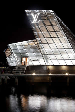 Louis Vuitton store in London at night - LONDON, UK - DECEMBER 20, 2022