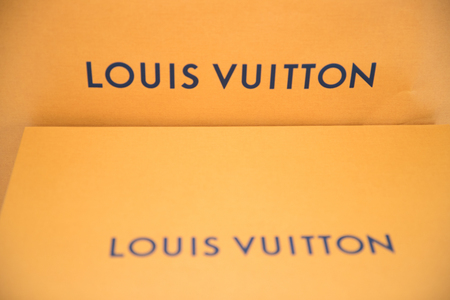 Philadelphia, Pennsylvania, USA - MAY 24, 2018: Louis Vuitton box. Louis Vuitton is a designer fashion brand known for its leather goods.
