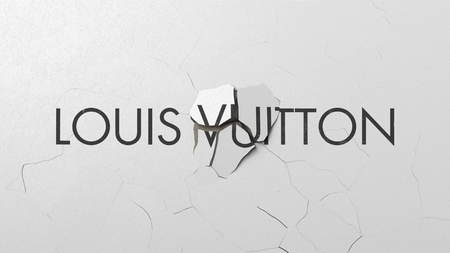 Crushing concrete wall with logo of Louis vuitton. Crisis conceptual editorial 3D rendering