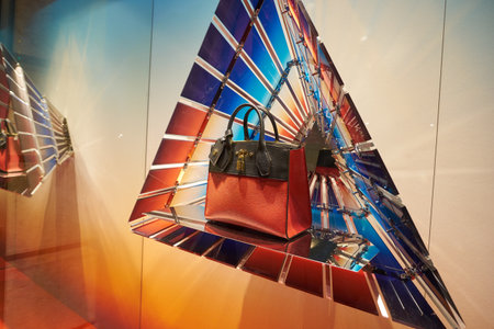 Milan, Italy - September 24, 2021: Handbags in a boutique store.