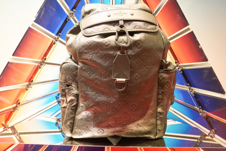 VERONA, ITALY - CIRCA MAY, 2019: a backpack on display at Louis Vuitton store in Verona.