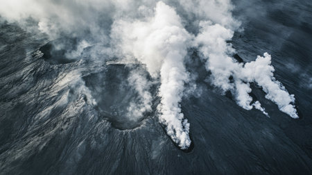 Intense digital composition employs swirling particle effects and stark chiaroscuro contrasts to evoke turbulent power and atmospheric drama. Suited for sci-fi film titles, geological disaster simulations, fantasy game assets, or environmental awareness campaigns targeting educators and digital creators. Layered grayscale tones provide dynamic depth for seamless inte... AI-generated illustration.