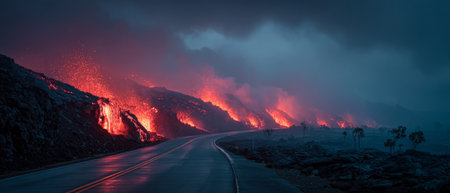 Volcanic eruption lava flow scene