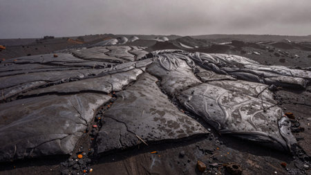 thickened surface of a cooling lava flow, created with generative ai