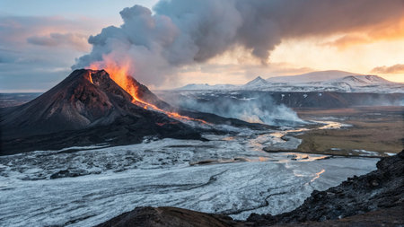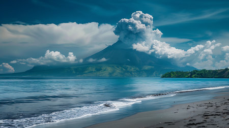 Dramatic volcanic eruption creating ash clouds in a breathtaking landscape view
