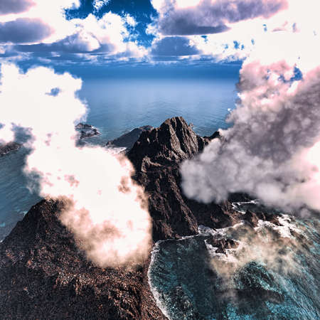 Volcano eruption. 3D illustration. 3D CG. High resolution.