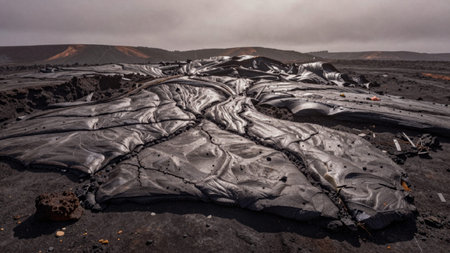 Solid lava plain near active volcano Tolbachik, Kamchatka, Russia