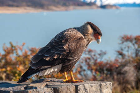 Caracara bird posing in front of Perito Moreno Glacier, Argentina.