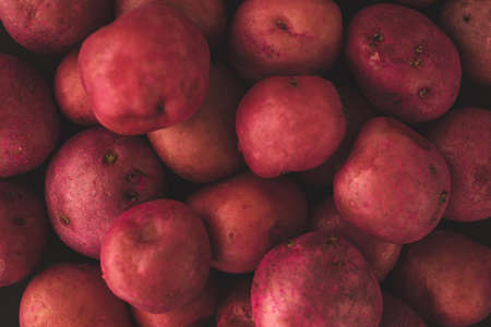 Potatoes in the hands of a farmer. Selective focus. Toned.