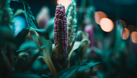 Fresh green leaf, purple flower head, underwater reef generated by artificial intelligence