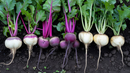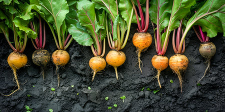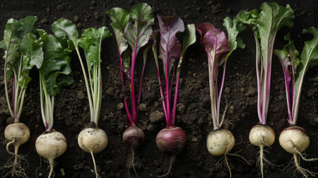 Fresh Rainbow Beetroots on Dark Soil - Vibrant Root Vegetables.