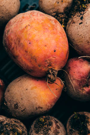 fresh, ripe, organic roots beet assembled into garden. agriculture background