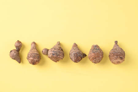 Organic taro on yellow background, Ugly vegetable concept, food trend