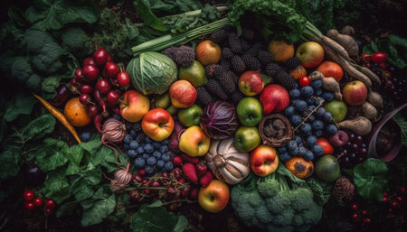 Fresh organic fruits and vegetables for healthy eating generated by artificial intelligence