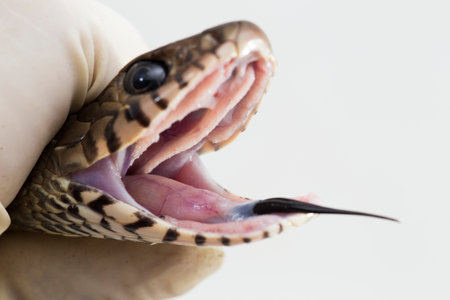 Rat snake with sharp focusing eyes and seems to be hissing.
