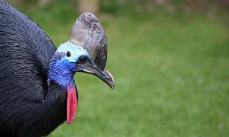 Close-up view of a female Southern cassowary - Casuarius casuarius with copy space