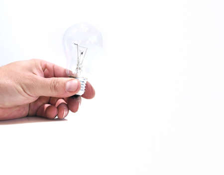 Creative new idea. Innovation, brainstorming, inspiration and solution concepts. Man holding light bulb,