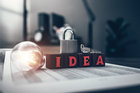 light bulb represents business good idea and keys represents security on financial, budget or asset document in workplace. Idea, Corporation, Enterprise concept.