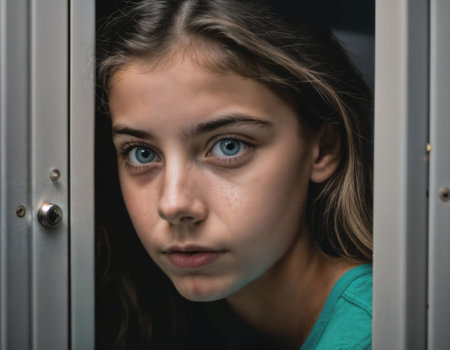 Beautiful young woman with brown hair looking at camera sadly generated by artificial intelligence