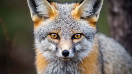 photograph gray fox illustration close up, face features, forest whiskers photograph gray fox