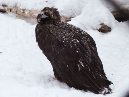 closeup portrait of a cinereous vulture, Aegypius monachus, or black Eurasian vulture, that is a large raptorial bird