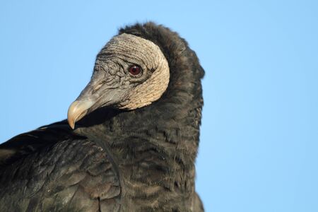 A portrait of a black vulture
