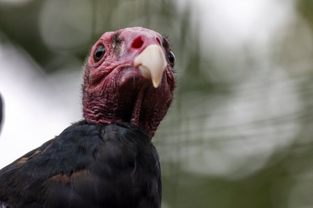 Close up view of a turkey vulture (Cathartes aura) in a zoo.