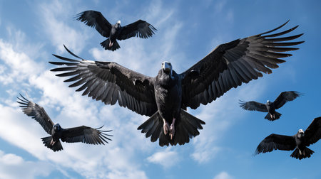 Flock of hawks flying in the sky