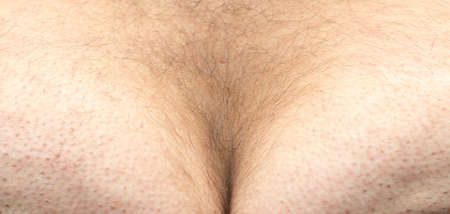 Concept of woman's intimate life. Cropped close up photo of woman's hands covering the intimate zone, she is shy and confused without underwear, isolated on white background