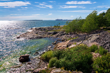 Seascape from a Helsinki shore on a beautiful summer day