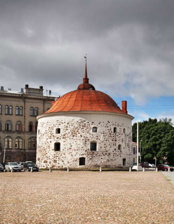 VYBORG, RUSSIA - July 12, 2018: Round Tower in Vyborg, Market Square. Monument fortification XVI century.