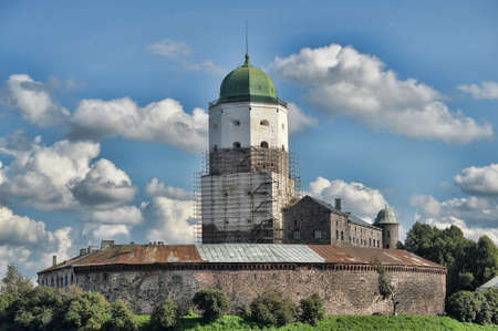 Vyborg castle. Medieval Swedish castle with St. Olav tower during reconstruction. Summer day in in Vyborg, Russia.