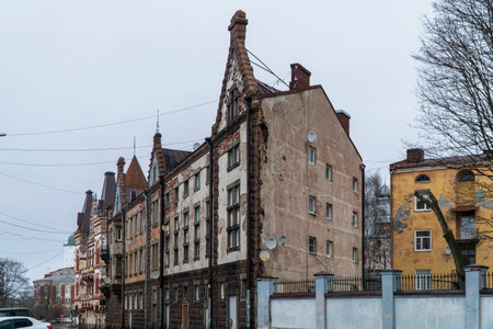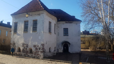 Russia, Vyborg 20.03.2020 Ancient houses in the center of Vyborg