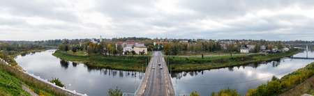 VYBORG, RUSSIA - OCTOBER 11, 2015: Panorama of the old town of Vyborg, october evening