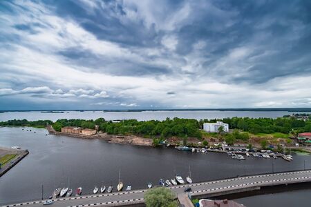 Vyborg, Russia, July 03, 2019: panoramic photo of the Vyborg from the roof of the medieval Vyborg fortress