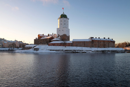 Vyborg, Russia - January 7, 2015: The Vyborg Castle on a winter morning. Vyborg, founded in the Middle Ages, the Swedes, the city is located on the shore of the Gulf of Vyborg.