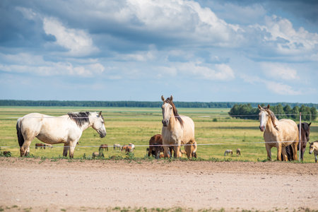 Horses in a meadow on a sunny day in the summer