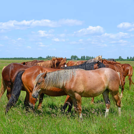 Horses on a summer pasture