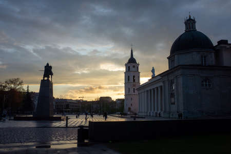 Statue of Grand Duke Gediminas on the Cathedral Square in the old town of Vilnius, Lithuania