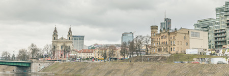 Vilnius cityscape with Vilnia river and skyscrapers on the background