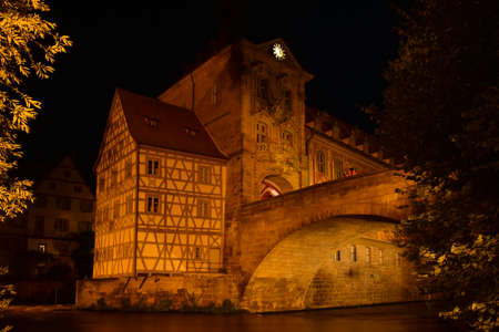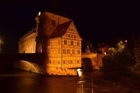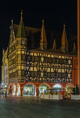half-timbered historic house in Fulda at night, Germany