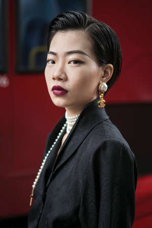 Paris, France - March 5, 2019: Street style outfit - Ami Suzuki, Aya Suzuki before a fashion show during Paris Fashion Week - PFWFW19