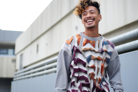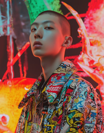 modern fashion portrait with colorful graffiti-style jacket