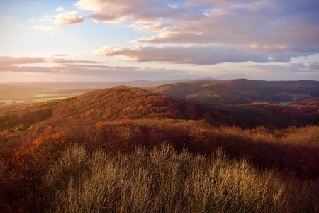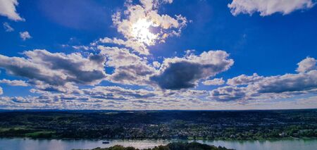 Panoramic view with clouds of the Rheine river valley taken from the Siebengebirge in Königswinter on a sunny autumn day.