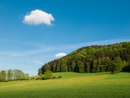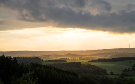 Summer Sunset in early June in the rural countryside of Germany near Bamberg in Franconia. Lovely green and orange colors