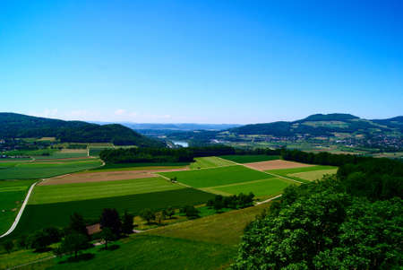 Magnificent panoramic view of the Rhine valley. A beautiful landscape on a navigable river in Germany