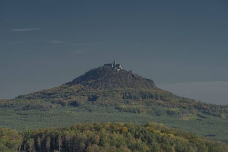 Hill with old castle Bezdez and dark blue sky in autumn sunny day