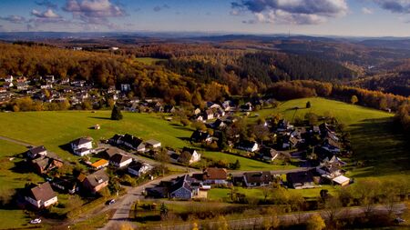Bottenberg landscape of a small village in the Siegerland area, Germany